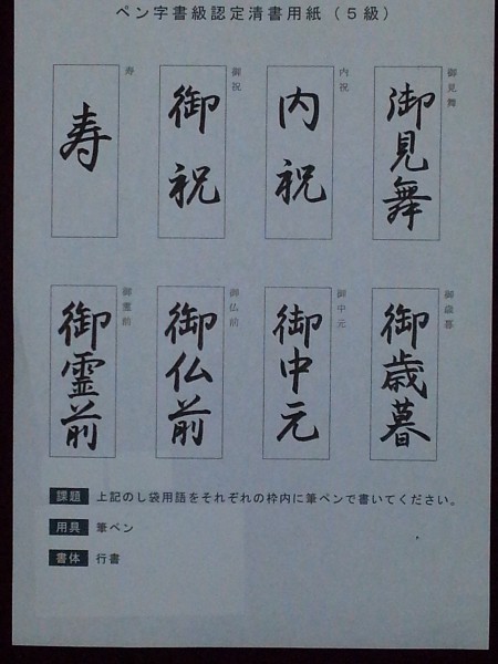 「ペン字」一般作品。